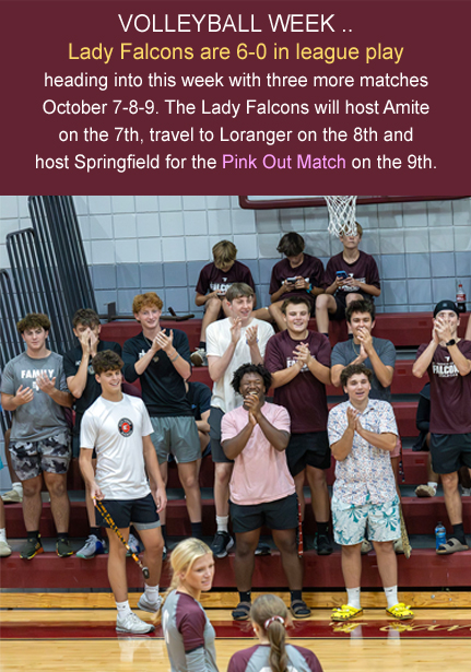 October 7 ... Volleyball Amite* 4:30 p.m. HOME.